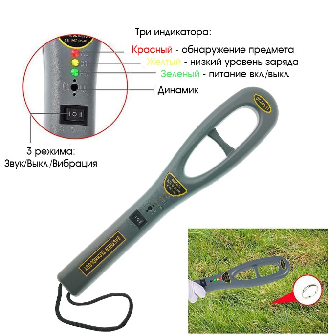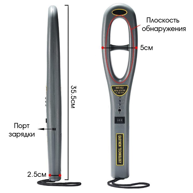 Ручной металлодетектор предназначен для обеспечения безопасности и обнаружения скрытых металлических предметов (в сумках, на теле человека, вшитых в одежду), данный детектор применяется охранниками или полицией, в местах массового скопления людей, и в местах досмотра или на КПП предприятий и торговых центрах. Металлодетектор имеет отличный чувствительный датчик, что позволяет ему без труда находить металлические предметы.