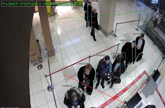 - Высокая точность определения размера очереди (до нескольких человек и до 99 процентов).